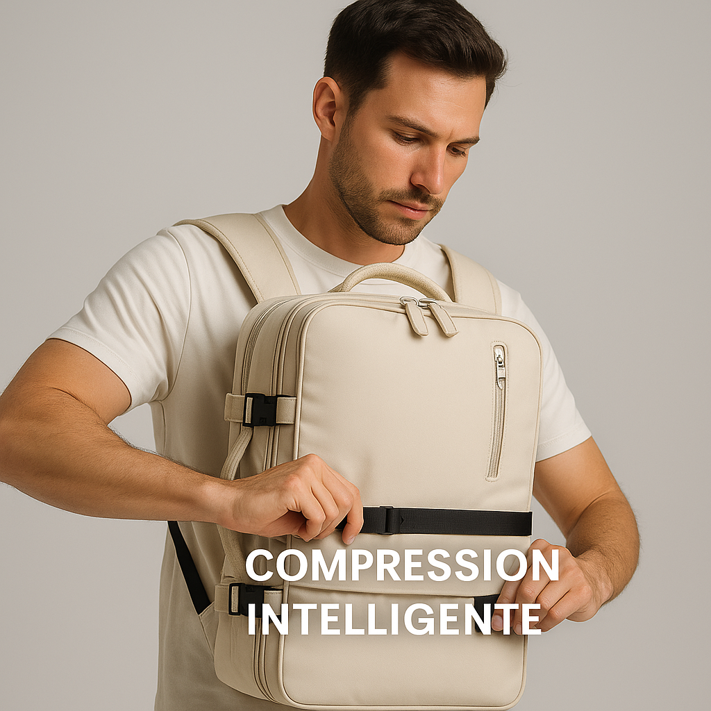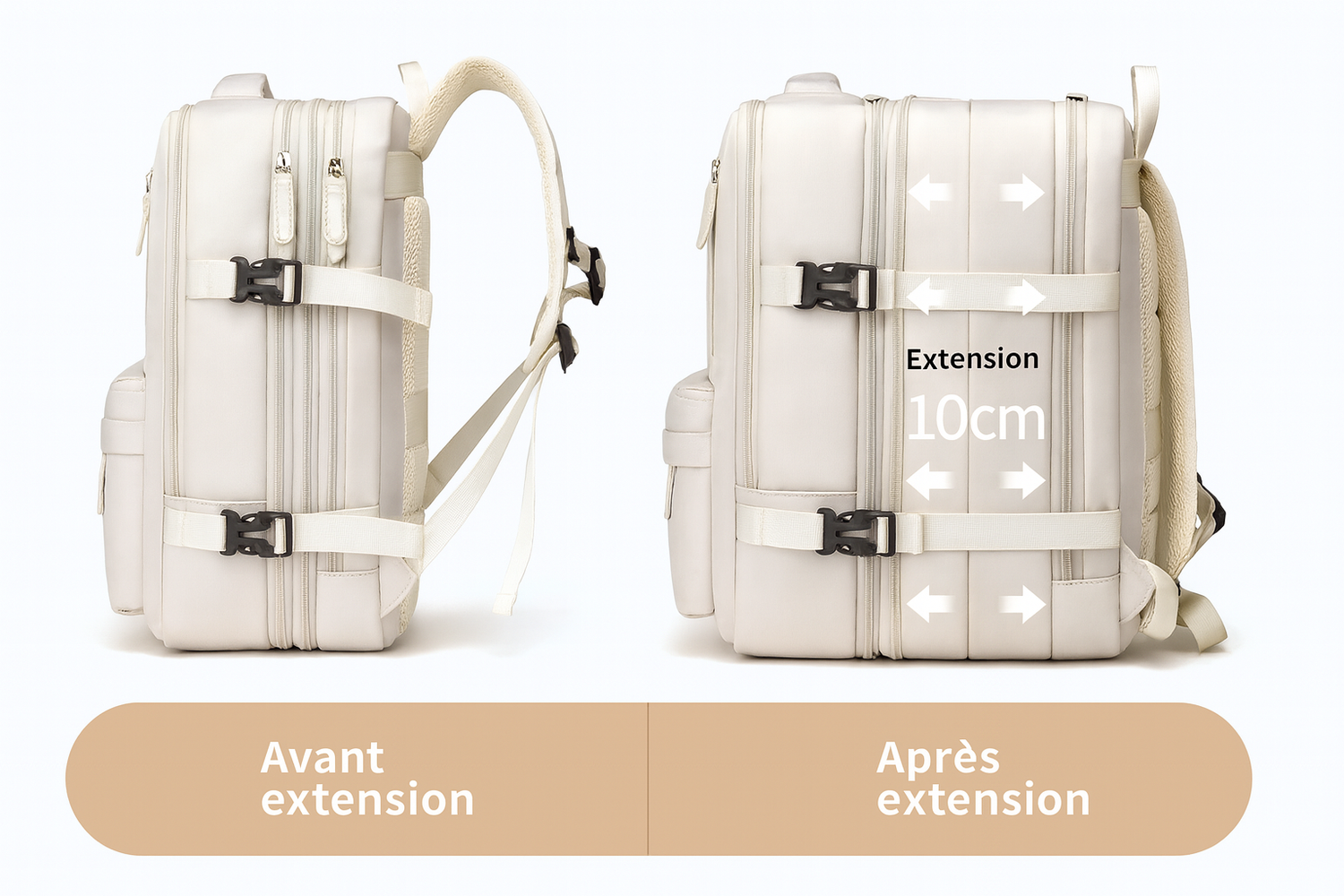 Notre sac à dos est équipé d’un système de compression sous vide avancé, conçu pour évacuer l’air contenu à l’intérieur. Ce mécanisme vous permet de réduire considérablement le volume de vos affaires tout en optimisant l’espace disponible. Résultat : un sac plus compact, sans compromis sur le contenu.