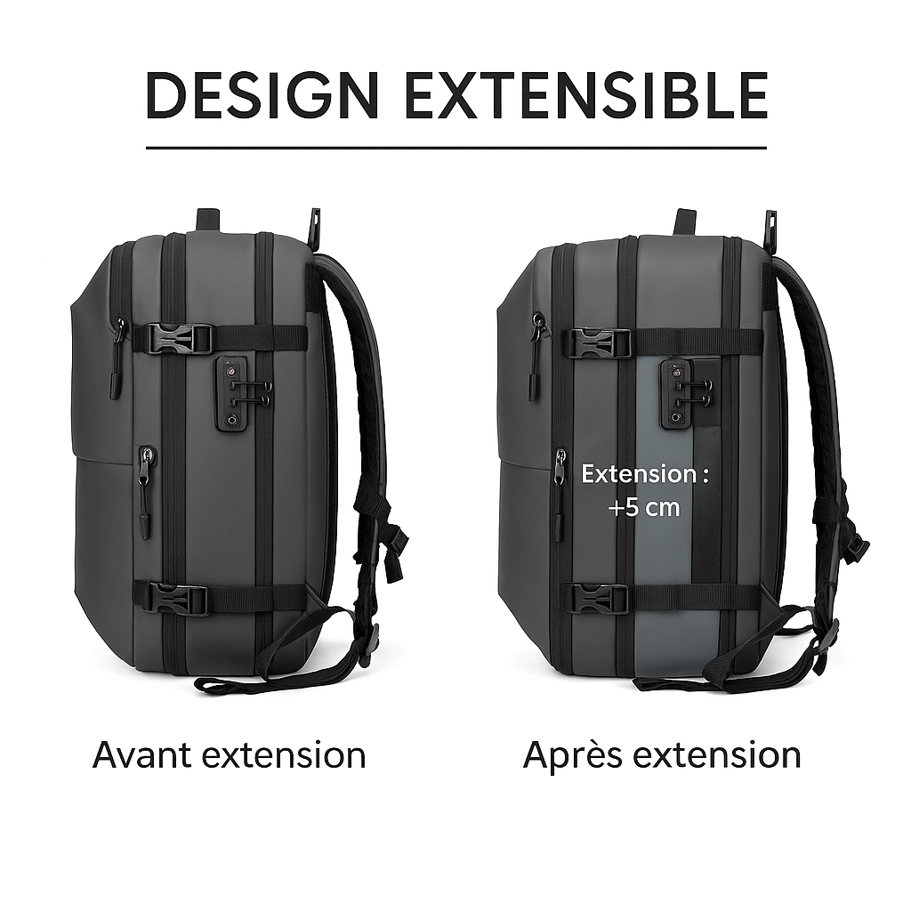 Notre sac à dos est équipé d’un système de compression sous vide avancé, conçu pour évacuer l’air contenu à l’intérieur. Ce mécanisme vous permet de réduire considérablement le volume de vos affaires tout en optimisant l’espace disponible. Résultat : un sac plus compact, sans compromis sur le contenu.